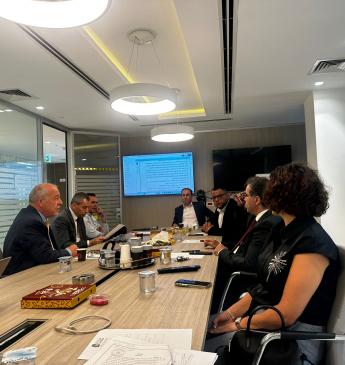 The Palestinian Union for Small and Microfinance Institutions held a meeting today at its headquarters with Dr. Ramiz Alakbarov, UN Deputy Special Coordinator for the Middle East Peace Process (UNSCO). The meeting included representatives from member institutions and officials from UNSCO.